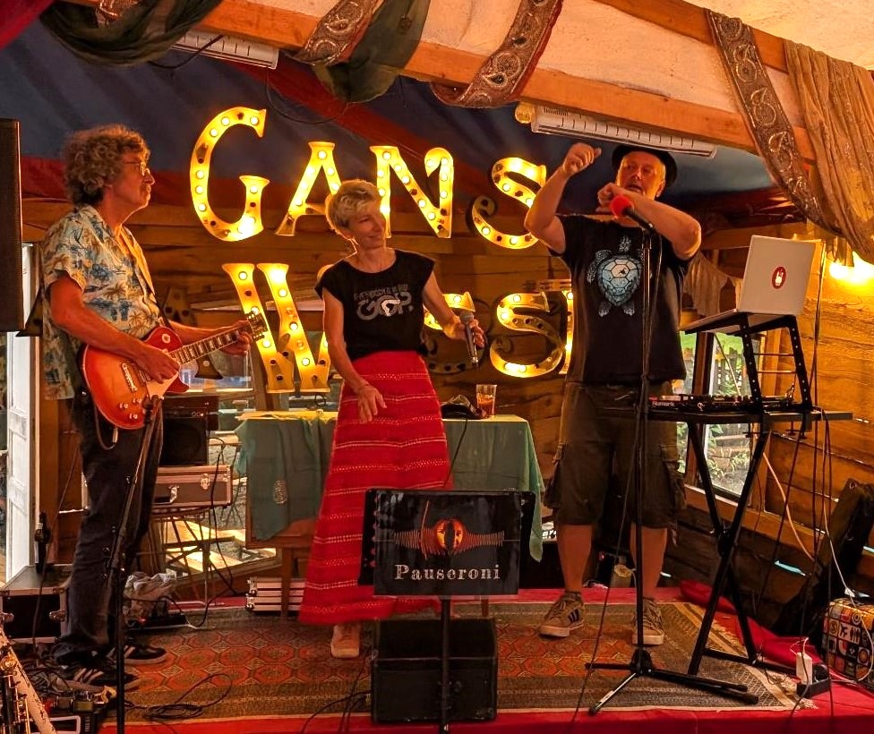 Das Live-Setup: Pat Peroni & Pauseline singen oder sprechen zu zweit, während die meisten Beats vom Mischpult kommen und mit Live-Effekten angereichert werden. Seit 2025 haben wir außerdem den Gitarristen Kurt Liebhäuser mit an Bord sowie den Saxophonisten Wolfgang Gerrer, die unsere Musik mit ihren Instrumenten und ihrem eigenen kreativen Zugang bereichern.